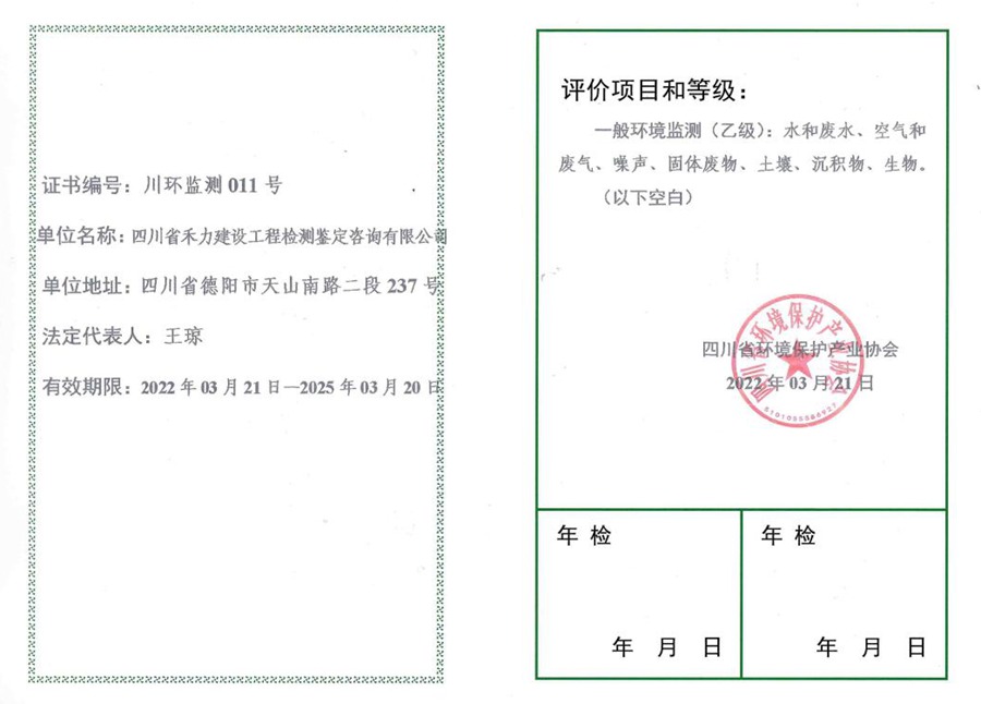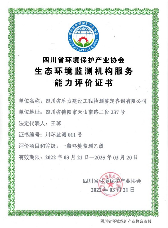 生态环境监测机构服务能力评价证书